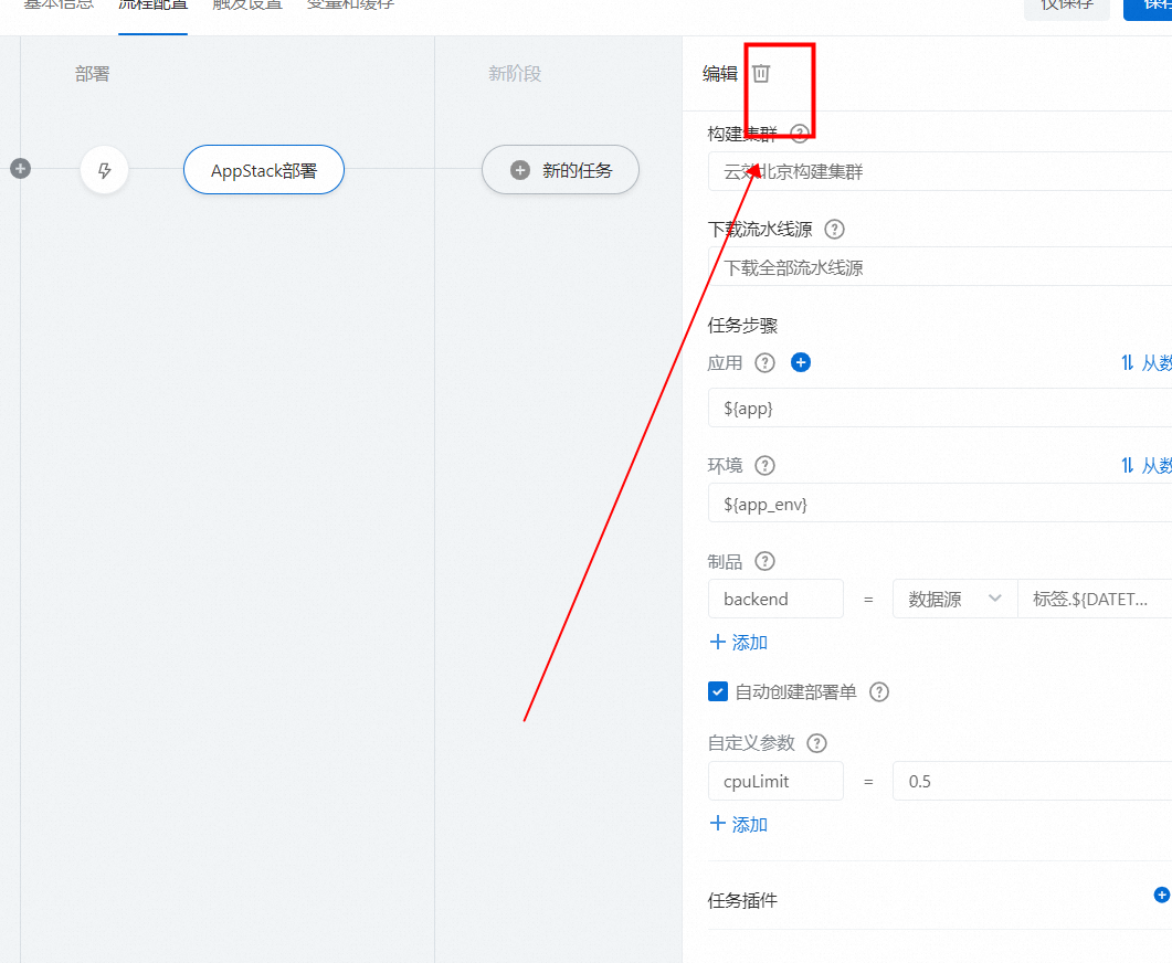 您先在Appstack上手动部署一下这个环境,成功后,在流水线上把Appstack任务删除之后重新建一个Appstack部署的任务: