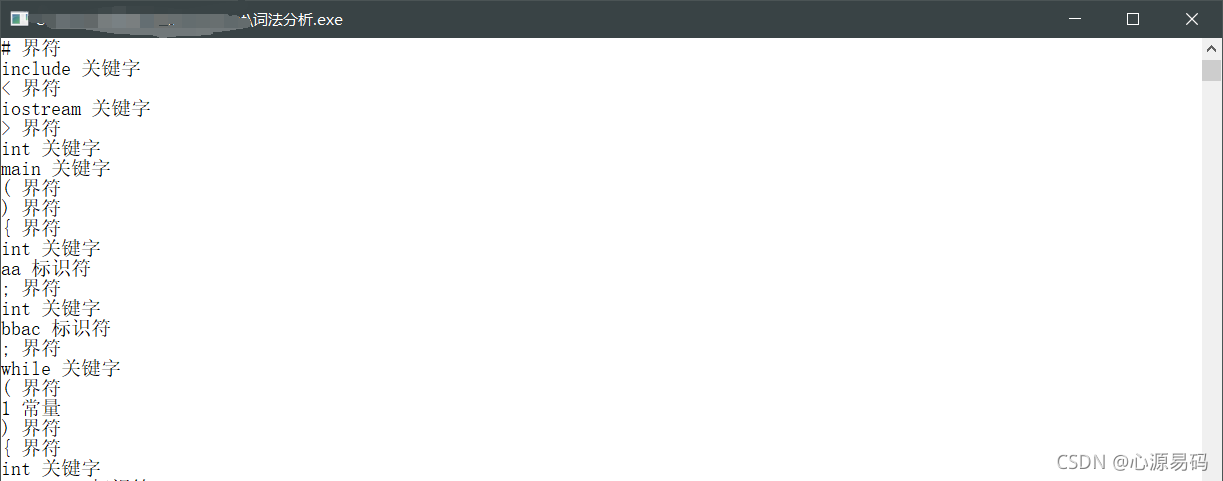 词法分析阶段是编译过程的第一个阶段,是编译的基础。这个阶段的任务是从左到右一个字符一个字符地读入源程序,即对构成源程序的字符流进行扫描然后根据构词规则识别单词(也称单词符号或符号)。词法分析程序实现这个任务。