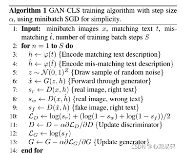 1)GAN-CLS:匹配感知鉴别器,其加入一组:真实图像和错误的文本描述的输入,通过这样的方法,让D能够更好地学习文本描述和图片内容的对应关系。