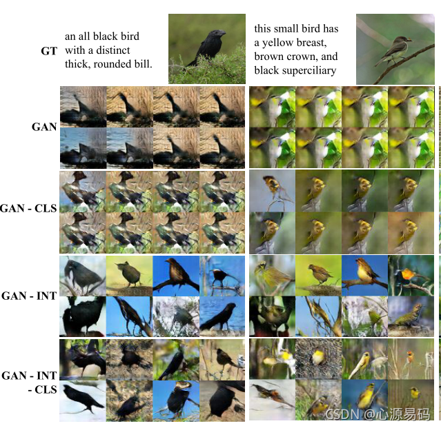 这篇文章是用GAN做文本生成图像的开山之作,作者使用了卷积循环神经网络文本编码器+深度卷积生成对抗网络(DC-GAN)。在此基础上,作者还做了三点改进: