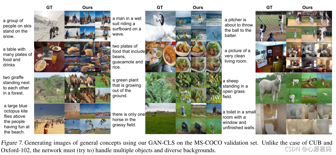 开发了一个简单有效的模型,用于根据详细的视觉文本描述生成图像。我们证明了该模型可以合成给定文本标题的许多合理的视觉解释。我们的流形插值正则化器大大改进了CUB上的文本到图像合成。我们展示了风格和内容的分离,以及从查询图像到文本描述的鸟姿和背景转换。最后,我们用MS-COCO数据集上的结果证明了我们生成具有多个对象和可变背景的图像的方法的通用性。