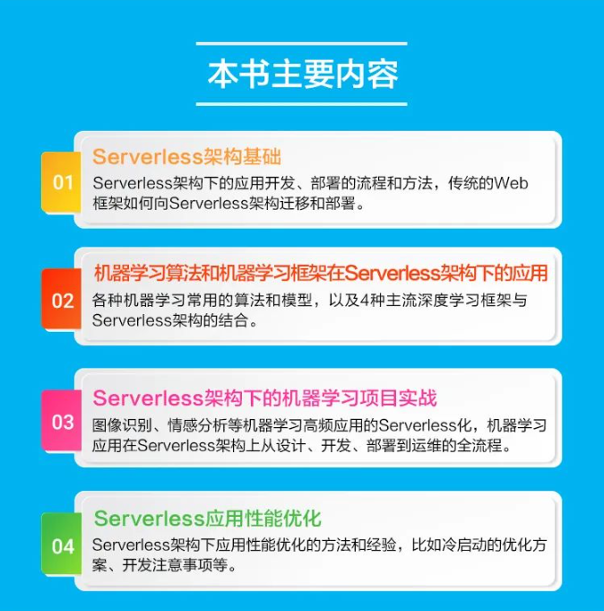 本书不仅有基础理论知识,还有大量的经验分享,以及对最新技术点的实践应用,包括但不限于 Serverless 架构下 GPU 实例的上手、多维度的冷启动优化方案、Serverless 架构多模调试能力等。我们希望读者通过对本书的学习,可以对 Serverless 架构有一个更加全面、直观的了解,对 Serverless 架构下的机器学习有更加深入的认识。