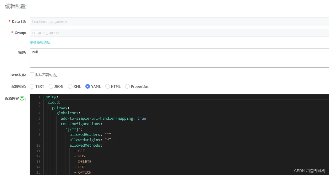在nacos的配置中心创建dataid为headlines-app-gateway的yml配置