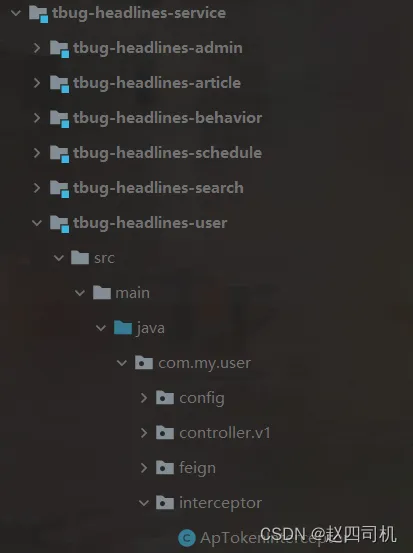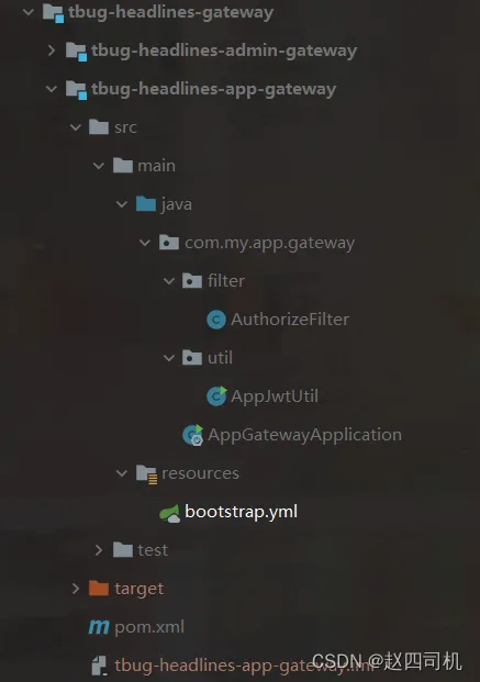 在tbug-headlines-gateway模块下创建工程tbug-headlines-app-gateway,整体架构如下: