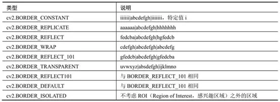 - borderType代表边界样式,一般采用其默认值BORDER_CONSTANT。