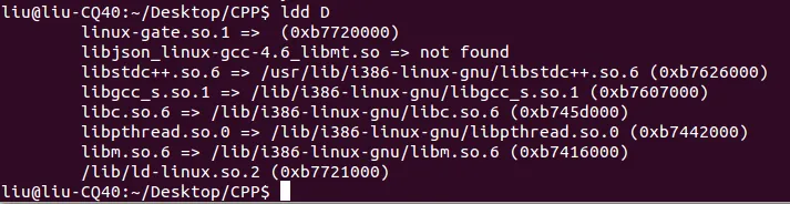 可以通过ldd命名来查看可执行文件依赖的动态链接库,如下(其中D为可执行程序):