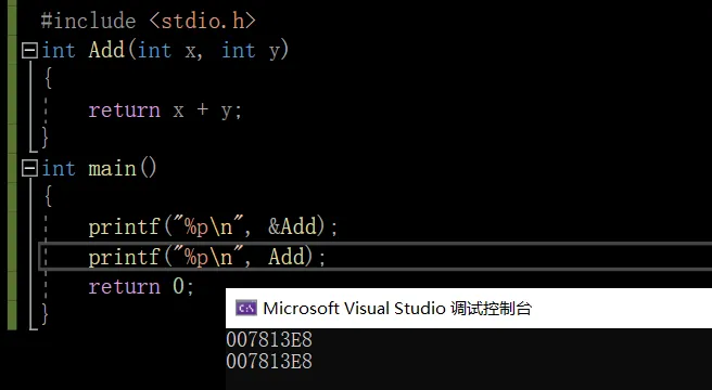 前面说到&数组名与数组名的区别,那&函数名与函数名有区别吗?我们来看一看