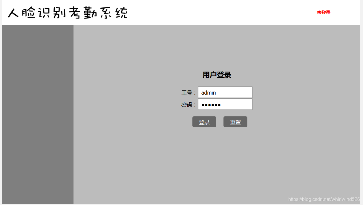 2. 输入工号和密码,点击【登录】按钮。管理员默认工号是admin,密码是111111。如下图: