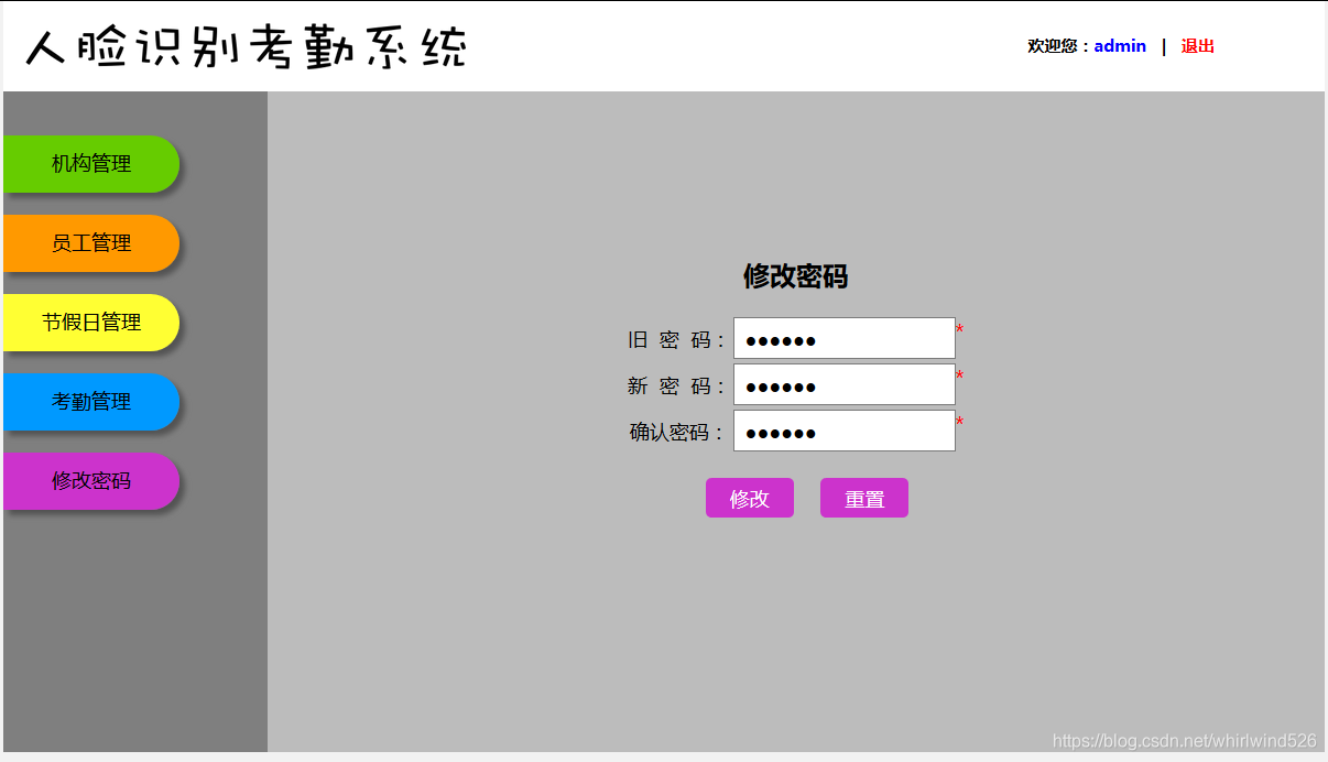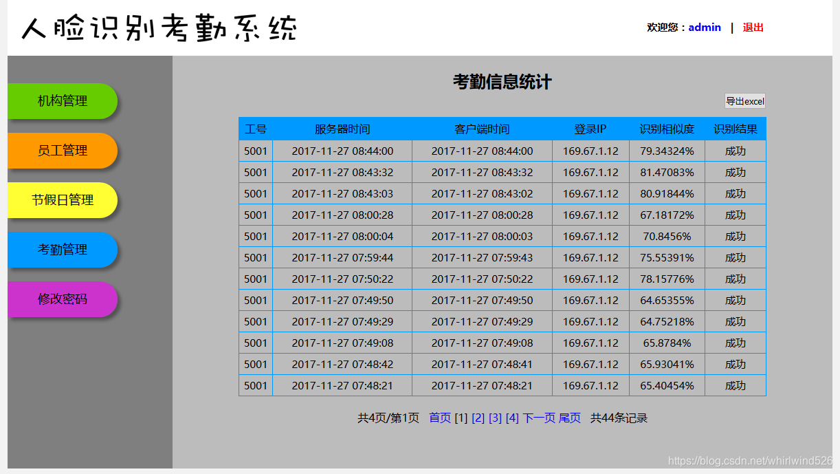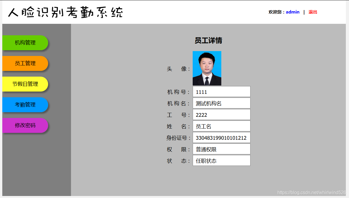此系统是人脸识别考勤系统的后台管理系统,考勤数据从人脸识别机器上获取,自动识别员工信息记录考勤。系统基于JSP/SERVLET来开发实现,开发工具采用IDEA或ECLIPSE,数据库采用MYSQL数据库。Util包中jdbcinfo.properties文件进行数据库连接的相关配置修改。