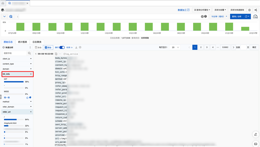 默认DCDN在日志推送时已经创建索引,您可以展开索引字段查看聚合后的字段分布。