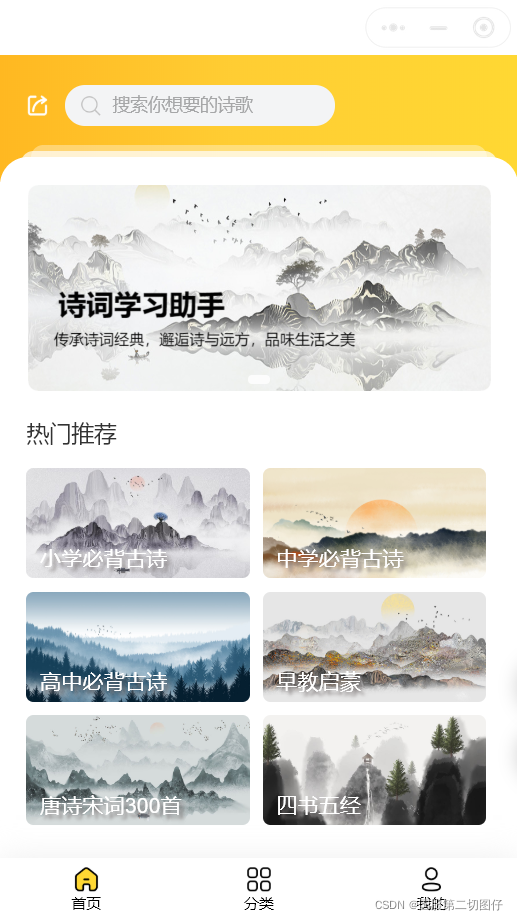 banner模块展示了诗词小程序的简单介绍。