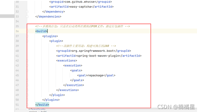 <!--多模块打包:只需在启动类所在模块的POM文件:指定打包插件 -->