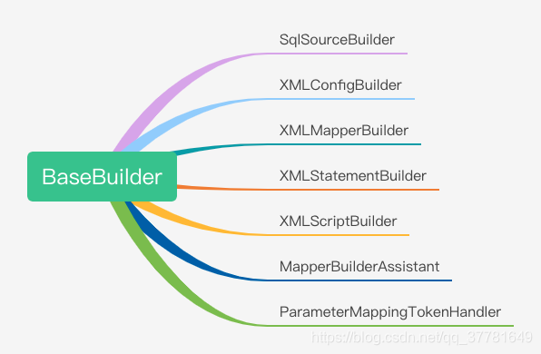 xxxBuilder 等构建器的作用是帮助 mybatis 解析配置文件以及构建 mapper 等, 关系图如下