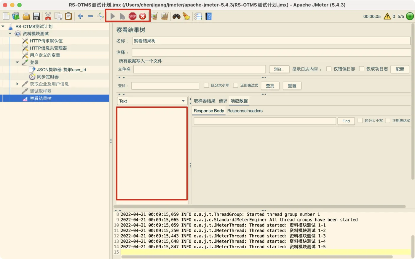 例如数量都是5,那么运行测试,Jmeter会等到5个用户同时准备好后,并发发起请求;