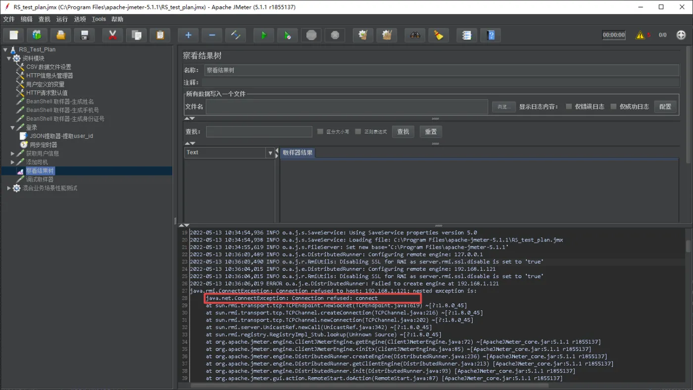 3)Jmeter启动从节点运行测试报错“connection refused”
