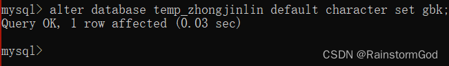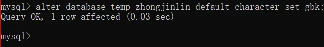 alter database temp_zhongjinlin default character set gbk;