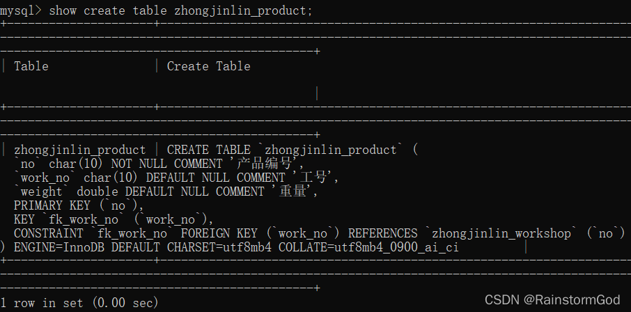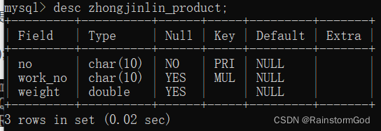 desc zhongjinlin_product;