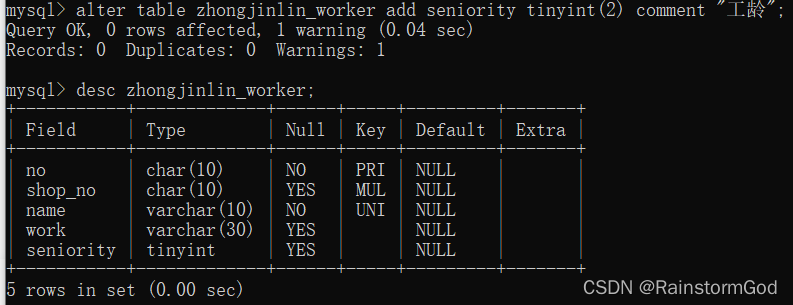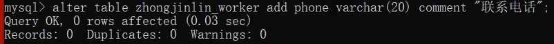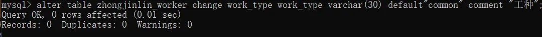-> work varchar(30) comment "工种",