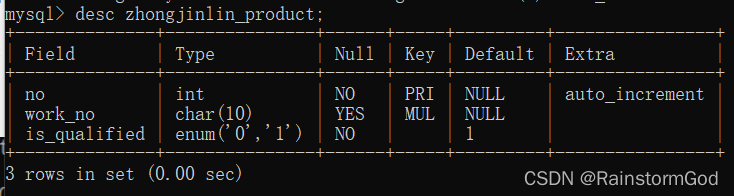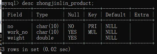 你查看了产品表的字段信息