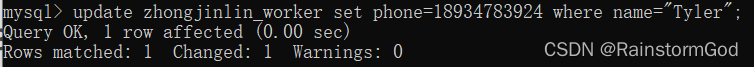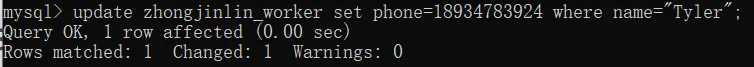 update zhongjinlin_worker set phone=18934783924 where name="Tyler";