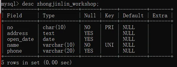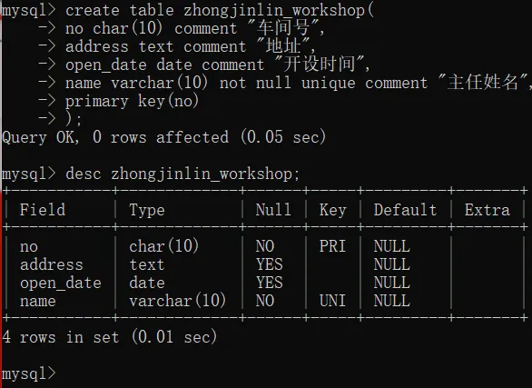 create table zhongjinlin_workshop(