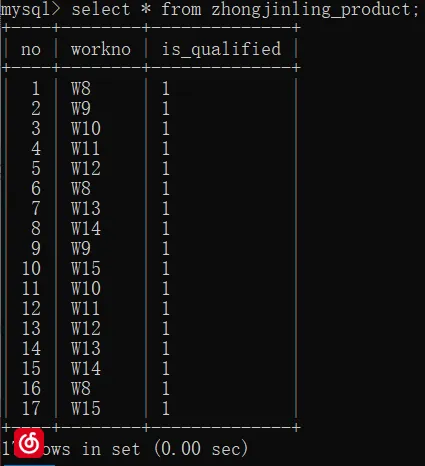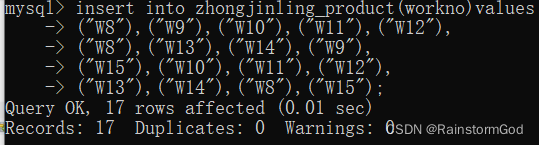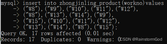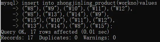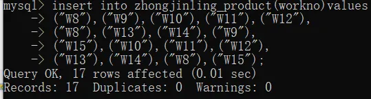 insert into zhongjinlin_product(work_no)values