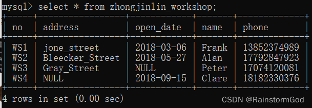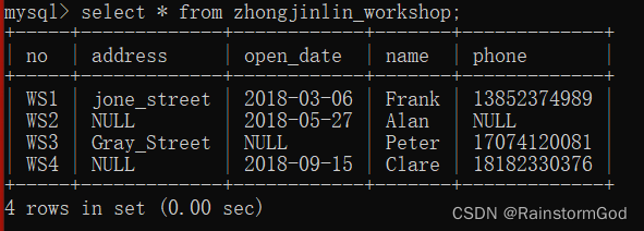 发现WS2车间地址、车间主任的联系方式都没有,顿时火大,打电话给厂长秘书要WS2车间地址及主任联系方式,她说问道告诉你。之后你打给WS1车间主任问到了WS1车间所有缺少的信息,你一一对数据库中的数据进行了修改