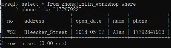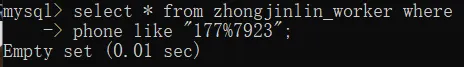 职工表中查看联系方式以177开头7923结尾的所有字段数据
