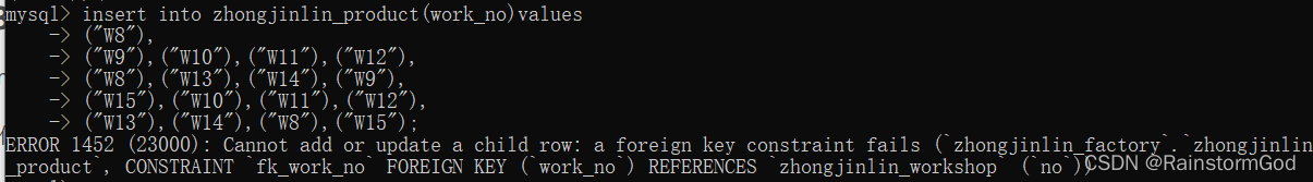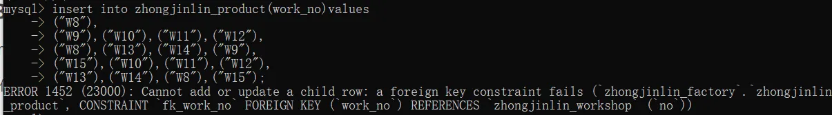 这时发现W15这条数据新增报错,和外键“工号”相关