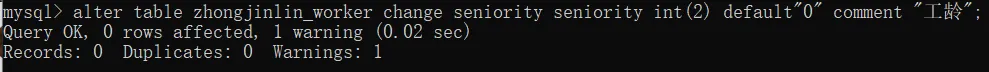 之后用修改字段数据类型的语句将职工表的SENIORITY字段修改如下表所示: