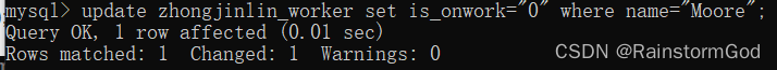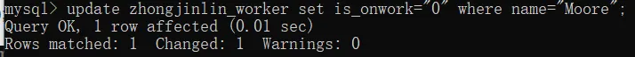 update zhongjinlin_worker set is_onwork="0" where name="Moore";