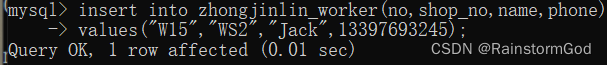 -> values("W15","WS2","Jack",13397693245);