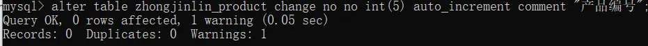 alter table zhongjinlin_product change no no int(5) auto_increment comment "产品编号";