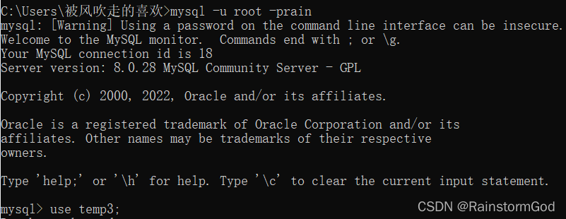 mysql -u root -prain
