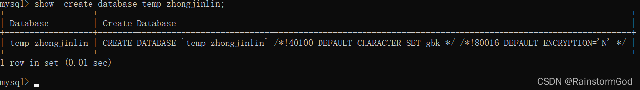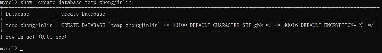 show create database temp_zhongjinlin;