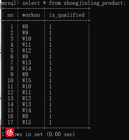 发现所有的空都被填满了,之后查看车间表中的所有数据