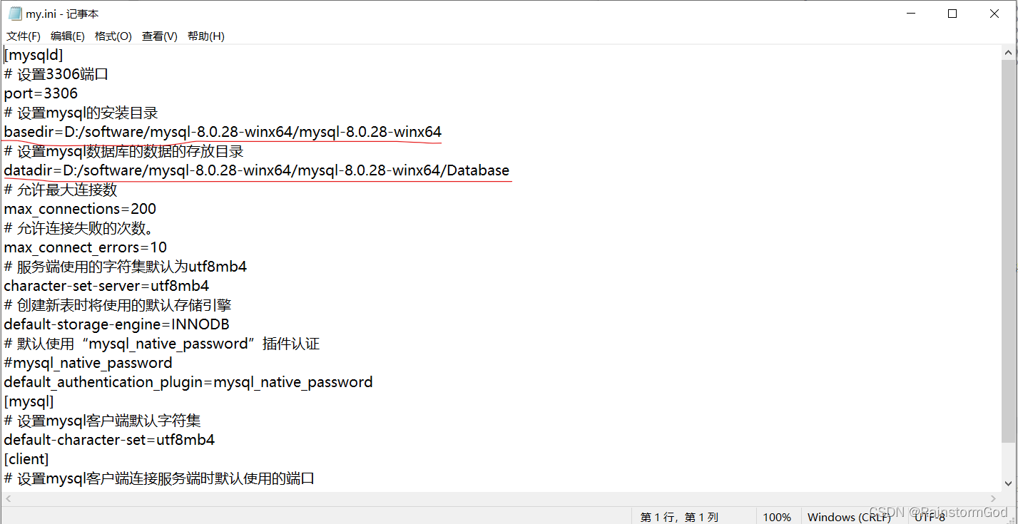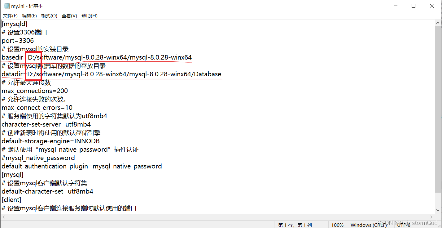 basedir等于号后面是你存放MySQL安装目录文件夹的地址