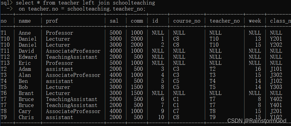 teacher_no varchar(20) comment"教师号",