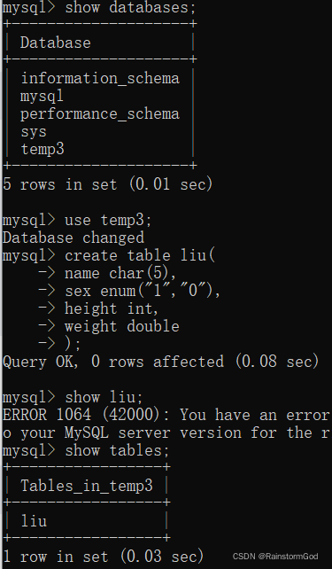 show tables;