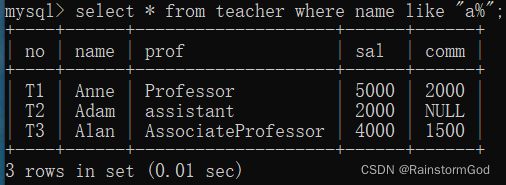 教师姓名中含A的老师