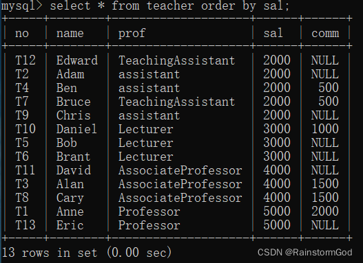 select * from 表名 order by 字段名;