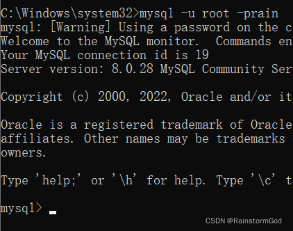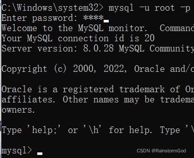 mysql -u root -p+个人密码