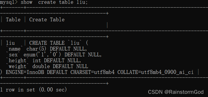show create table 表号;