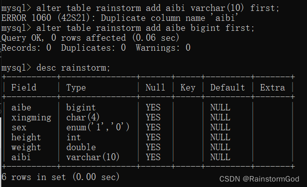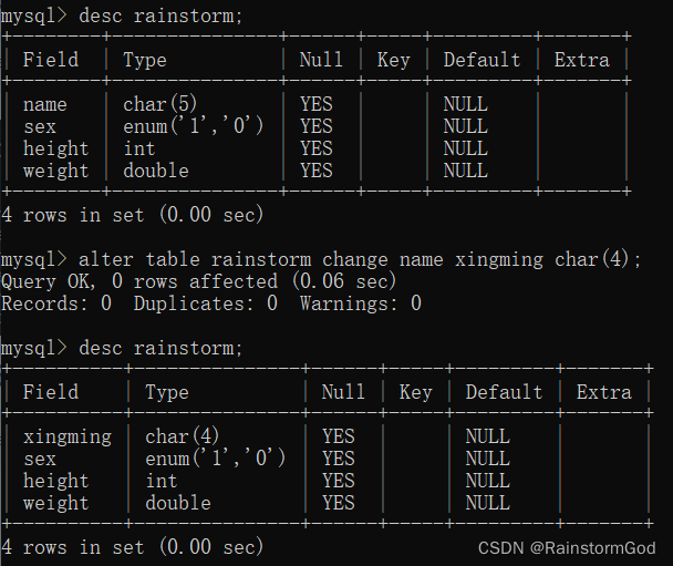 21.修改表的字段名和字段信息