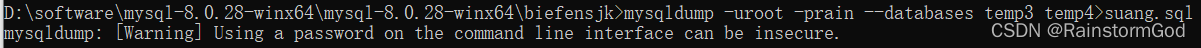 mysqldump -u用户名 -p密码 --databases 数据库名1 数据库名2>文件名.sql