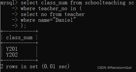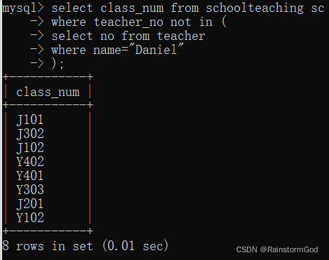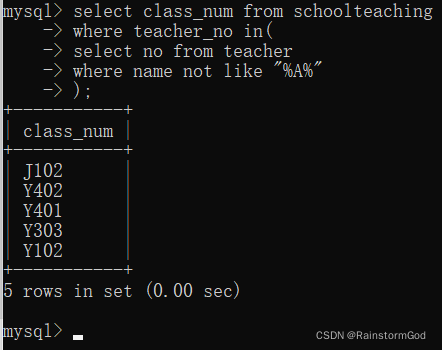 select * from 表名 where 字段名 in (查询语句);