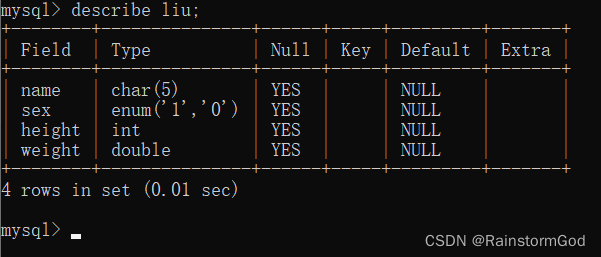 desc 表名;(简写)