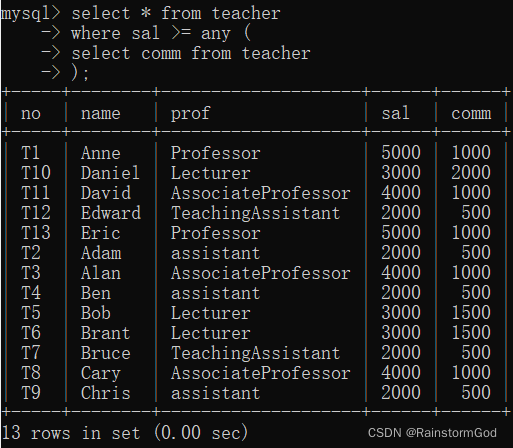 58.子查询 any(大于任意)