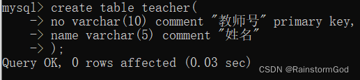 no varchar(10) comment "教师号" primary key,